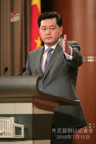 資料圖:2010年7月15日,外交部發言人秦剛舉行例行記者會。
