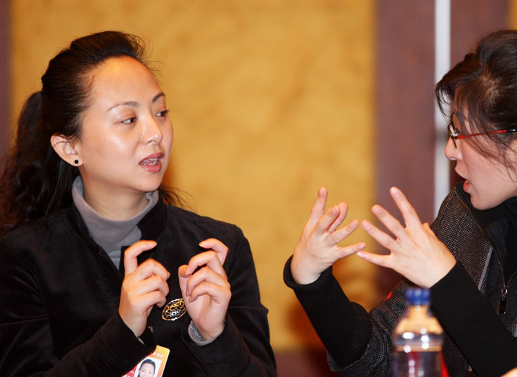 3月4日,一位手語翻譯在政協(xié)文化藝術(shù)界小組會(huì)上為邰麗華委員(左)翻譯與會(huì)委員的發(fā)言。 兩會(huì)是中國人民政治生活中的大事,除了人大代表和政協(xié)委員積極履行職責(zé),參政議政,還有許多工作人員為他們提供個(gè)性化、多樣化的貼心服務(wù),為保證兩會(huì)順利進(jìn)行默默奉獻(xiàn)。 新華社記者 陳建力 攝