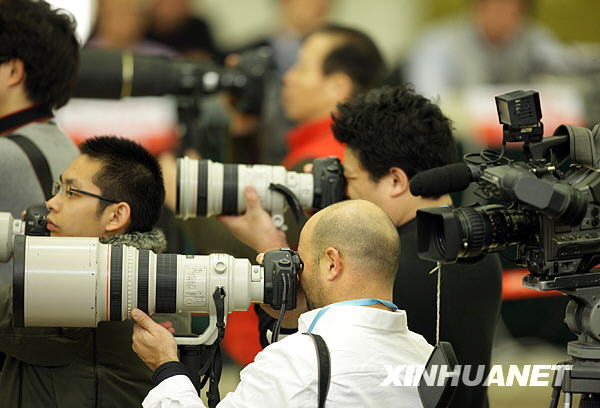 這是中外記者在記者會(huì)上采訪拍攝。新華社記者邢廣利攝