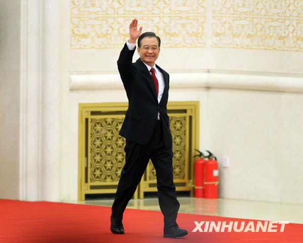 3月14日,國務院總理溫家寶在北京人民大會堂與中外記者見面,并回答記者提問。 這是溫家寶總理步入會場。新華社記者邢廣利攝