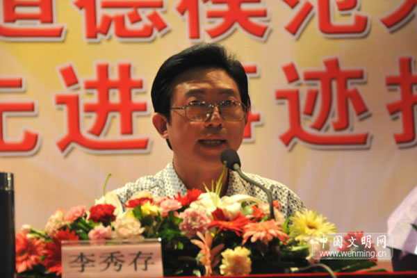唐山市委宣傳部副部長(zhǎng)、文明辦主任李秀存主持報(bào)告會(huì)。中國(guó)文明網(wǎng) 王德偉 攝