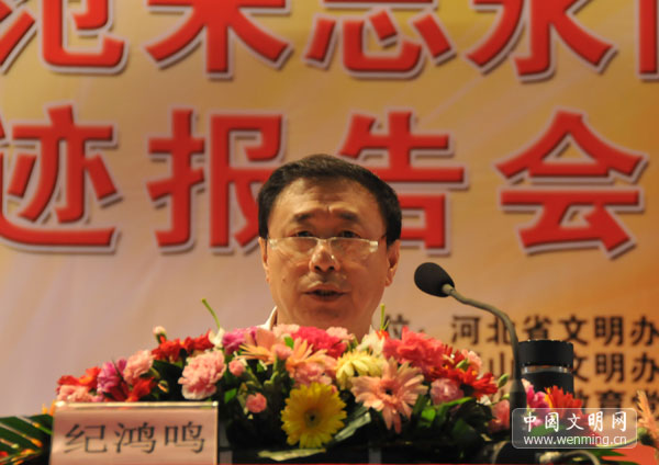 河北省文明辦協(xié)調(diào)處處長(zhǎng)紀(jì)鴻鳴出席報(bào)告會(huì)并做重要講話。中國(guó)文明網(wǎng) 王德偉 攝