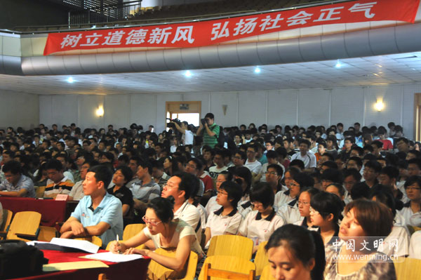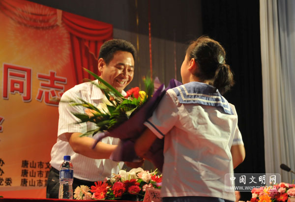 唐山市委宣傳部副部長(zhǎng)、文明辦主任李秀存主持報(bào)告會(huì)。他介紹了近年來(lái)唐山市道德模范評(píng)選表彰工作取得的豐碩成果:2008年和2009年先后評(píng)選了兩屆唐山市道德模范,全市涌現(xiàn)出了一批事跡感人的道德模范人物。