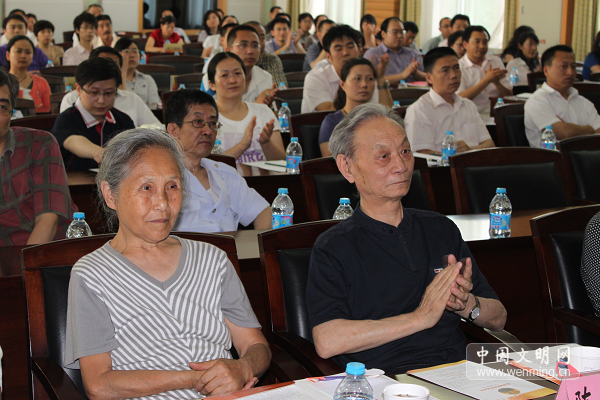 2010年6月10日,陳榮超(前排右一)及夫人(前排右二)出席出席北京市豐臺(tái)區(qū)道德模范巡講展示活動(dòng)啟動(dòng)儀式。中國(guó)文明網(wǎng) 鄧植尹 攝 【觀看視頻】