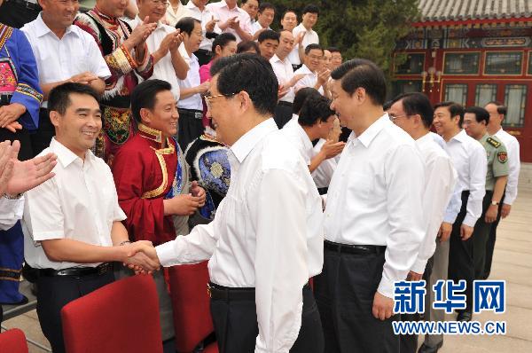 6月30日,中共中央在北京中南海懷仁堂召開深入開展創(chuàng)建先進基層黨組織、爭當優(yōu)秀共產(chǎn)黨員活動座談會。會前,胡錦濤、習近平、賀國強等中央領導同志親切會見全國先進基層黨組織和優(yōu)秀共產(chǎn)黨員代表。新華社記者黃敬文攝