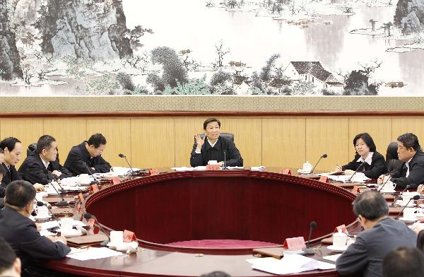 5月7日,中央創先爭優活動領導小組在北京召開第一次會議。中共中央政治局委員、中央書記處書記、中組部部長、中央創先爭優活動領導小組組長李源潮出席會議并講話。新華社記者丁林攝
