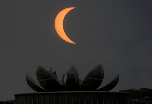 當日,青島出現日環食景觀,眾多天文愛好者和游客紛紛來到觀測點,爭睹天文奇觀。