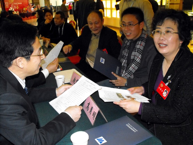 1月26日下午,一場獨特的法律咨詢活動在山東大廈大廳舉行。據悉,這是山東“兩會”期間首次舉辦類似活動。省政協社會法制委員會相關人員表示,將以此次活動為契機,擬在2010年逐步建立法律咨詢及服務機制。圖為高月明律師在為委員們解疑答惑。