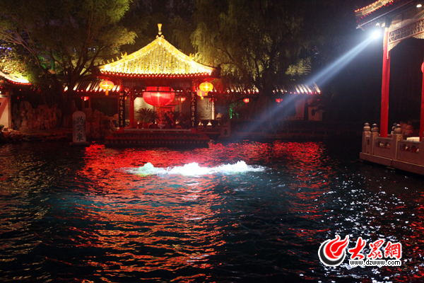 在趵突泉三股水旁,閃光燈在夜色中頻頻閃爍,記者們用“長槍短炮”把濟南的泉水頃刻定格。