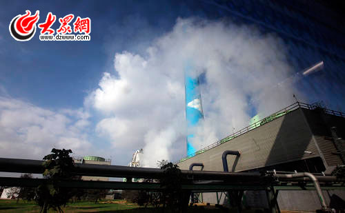 云煙繚繞的亞太森博公司平添幾分美意。大眾網記者 曹亮 攝