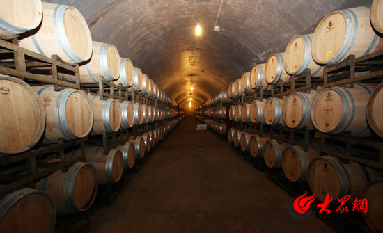 張裕酒文化博物館內(nèi)的酒窖4號洞深入地下7米,距海邊不足百米,四季恒溫。