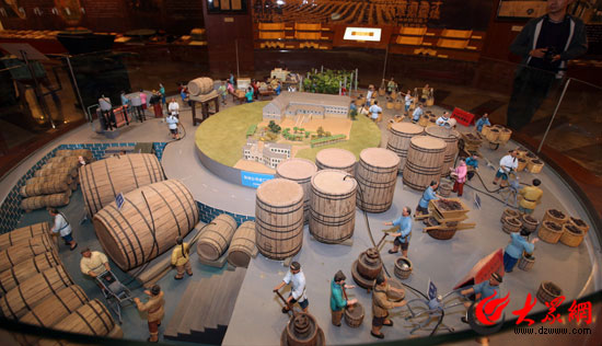 張裕酒文化館展示早期釀酒場景。