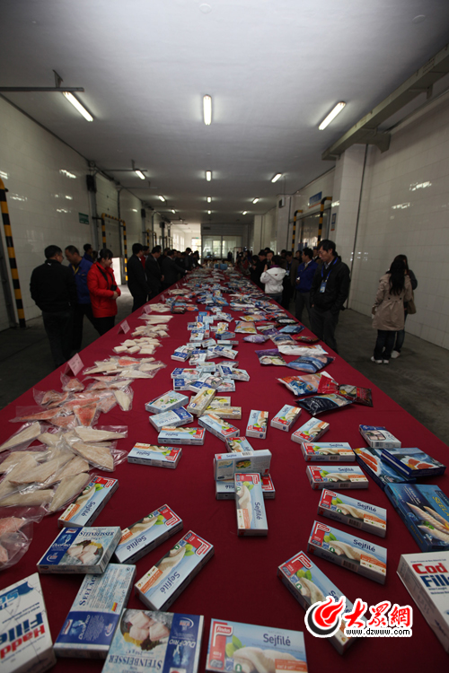 網絡媒體記者瀏覽琳瑯滿目的東方海洋產品