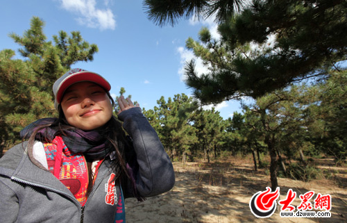 聽(tīng)海風(fēng)拂過(guò)松林,松濤陣陣,南海新區(qū)一座生態(tài)藍(lán)色之城正在崛起。圖為東方網(wǎng)美女記者聽(tīng)松濤之聲。大眾網(wǎng)記者 曹亮 攝
