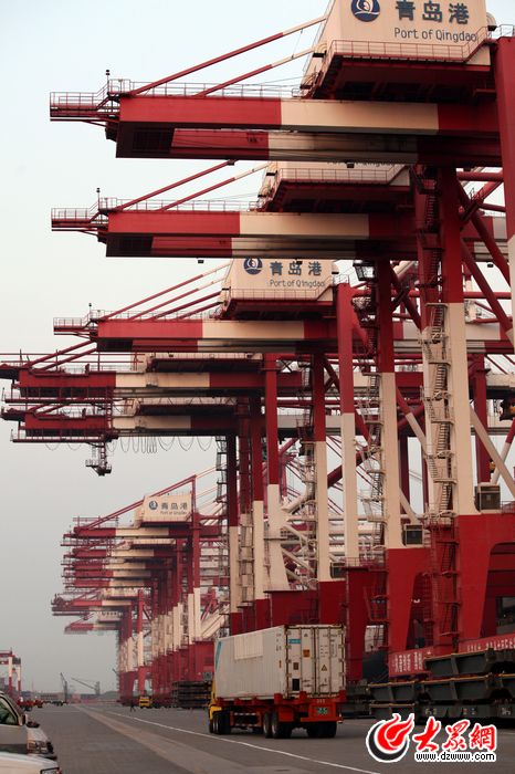 繁忙的青島港集裝箱碼頭。大眾網(wǎng)記者 曹亮 攝