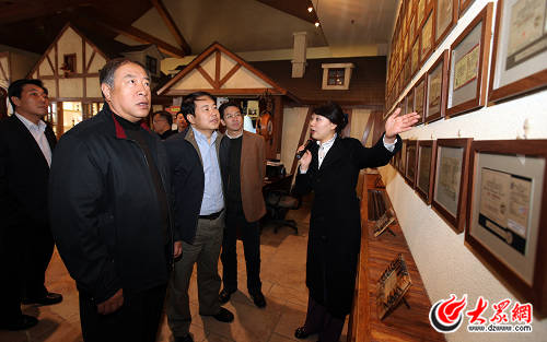 25日,采訪團(tuán)參觀訪問張?jiān)H葡萄酒城,感受濃厚的張?jiān)>莆幕J【W(wǎng)絡(luò)文化辦公室主任劉致福,煙臺(tái)市委常委、宣傳部長劉延林陪同采訪。大眾網(wǎng)記者 曹亮 攝