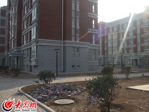 1月10日早上,大眾網(wǎng)記者走進(jìn)外海中央花園,曾經(jīng)承諾2008年6月30日交房的“風(fēng)景優(yōu)美的中高檔社區(qū)”依舊是一片荒涼,樓前的綠化帶上不見綠植只有土坷,甚至有的堆放著大塊的建筑廢料。規(guī)劃中小區(qū)東面的大道如今還是一片狼藉。稀稀拉拉的幾個施工人員在不慌不忙的鋪設(shè)路燈,其中一位告訴記者:“聽說開發(fā)商沒有給我們老板錢,所以我們來干活的也不多,這不,連路燈的主電線用什么型號材料還沒定呢”。
