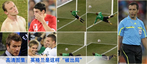 蘭帕德、杰拉德比賽結(jié)束后沒有眼淚,蘭帕德很落寞地與施魏因斯泰交換球衣,這是他最后一次世界杯。上屆世界杯,蘭帕德是所有隊(duì)員中射門最多的,卻沒有一個(gè)進(jìn)球,這在德國(guó)成為一段笑話。兩屆世界杯,蘭帕德為英格蘭隊(duì)貢獻(xiàn)了41次射門,卻沒有一個(gè)進(jìn)球。第38腳射門,蘭帕德的球全世界都看到進(jìn)了,但是裁判們沒有看到。第39腳射門,德國(guó)門將投降了,但是橫梁勇敢站出來拒絕了他的進(jìn)球。第40腳射門,他的任意球被德國(guó)隊(duì)人墻擋出,反擊,德國(guó)人又進(jìn)球了。第41腳,這或許是蘭帕德最后一次在世界杯上的射門,但是德國(guó)門將接住了球……
