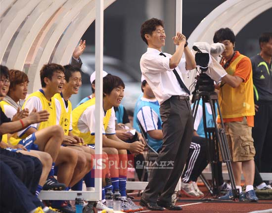 韓國當家球星樸智星當國家隊主教練了!韓國今天各家媒體都以醒目標題報道曼聯樸升遷一事。據稱為了給那些組成國際聯姻家庭的孩子們提供獎學金,以剛剛參加過南非世界杯的韓國隊球員為班底,今天下午與京畿道安山市一家球隊混合隊舉行慈善比賽,明星隊的主教練就是韓國隊現任隊長樸智星,誰也沒有想到原本生龍活虎的樸隊長在場邊指揮也有模有樣,確有趁勢搶班奪權的范兒。
