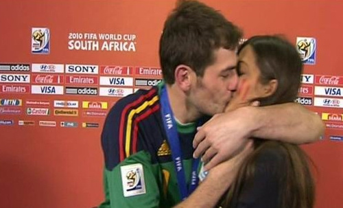 在西班牙1-0擊敗荷蘭奪得了本屆世界杯冠軍后,整個斗牛士全隊上下都顯得非常興奮。守門員卡西利亞斯在賽后接受記者女友卡波內羅的采訪時,甚至情不自禁地在鏡頭前激吻女友。