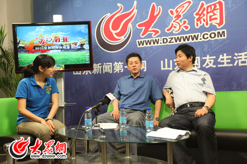 大眾網(wǎng)濟(jì)南6月11日訊(記者 韋國(guó)騫) 今天是大家與闊別四年的世界杯重逢之日,今夜是無(wú)數(shù)球迷盡情狂歡的不眠之夜。原泰山隊(duì)名將馮建國(guó),資深網(wǎng)友兼球迷、作家李恒昌做客大眾網(wǎng)“鋒言巧語(yǔ)”節(jié)目,與廣大網(wǎng)友一起進(jìn)入非洲時(shí)間,共度南非世界杯首夜。對(duì)于世界杯的揭幕戰(zhàn),兩位嘉賓認(rèn)為南非隊(duì)至少能憑借主場(chǎng)優(yōu)勢(shì)立于不敗,并且認(rèn)為另一場(chǎng)法國(guó)對(duì)陣烏拉圭的比賽平局可能性比較大。