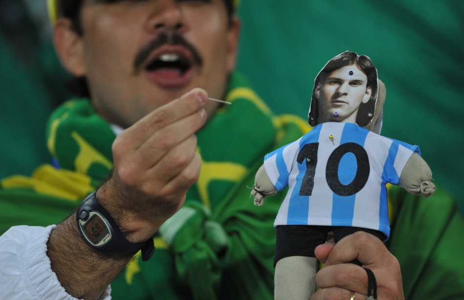 北京時間6月28日凌晨2時30分,2010年南非世界杯1/8決賽第四場打響,最終阿根廷3-1戰勝墨西哥晉級8強。但阿根廷頭號巨星梅西依舊破門乏術,這也許真是因為遭到了球迷的“陷害”。