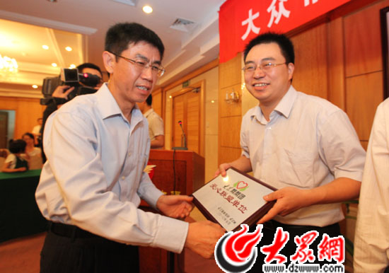大眾報業集團黨委常委、副總編輯郝克遠為企業代表頒發獎牌