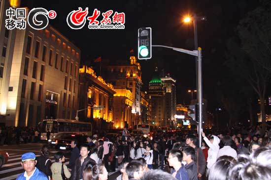 大眾網-移動G3上海4月30日快訊(特派記者 隋喬 劉國棟)19:00,此時的外灘人頭攢動,周圍建筑的燈光秀璀璨炫目,來自祖國各地和世界的游客紛紛聚集于此,在上海這一地標準備觀看今晚世博會的焰火表演。
