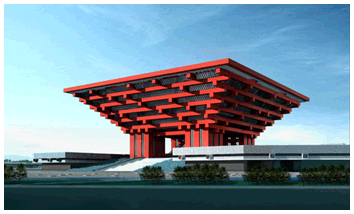 中國館建筑外觀以“東方之冠”的構(gòu)思主題,表達(dá)中國文化的精神與氣質(zhì)。國家館居中升起、層疊出挑, 成為凝聚中國元素、象征中國精神的雕塑感造型主體——東方之冠。