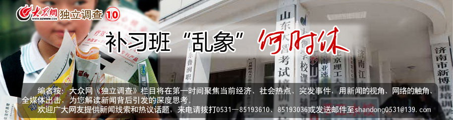 已經在濟南從事了近十年教育培訓工作的王先生告訴記者,辦補習班其實很簡單,只要在居民區或寫字樓里租幾間房子,擺上桌椅掛上黑板,再請幾個老師就可以開課了。條件好點還會安個空調,擺個飲水機或開水器,提供飲用水,差點的連這些也省了。至于辦補習班需要的各種手續和證件,王先生說,很多補習班都是能省則省,能免則免,反正也很少有人查,“真正有教育部門頒發的辦學許可證的沒幾個”。