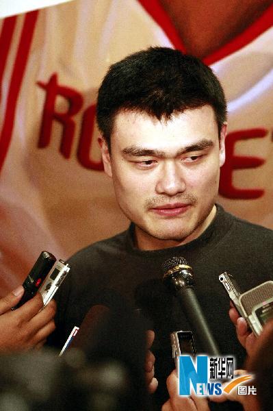 4月14日,休斯敦火箭隊球員姚明在賽前接受媒體采訪宣布,他昨天晚間聽到青海地區發生地震,并且有幾百名同胞遇難,心里非常難過。他說他的基金會將立即為青海地震賽區募集善款,并且根據震區情況實施下一步援助計劃。圖為姚明回答記者提問。新華社發