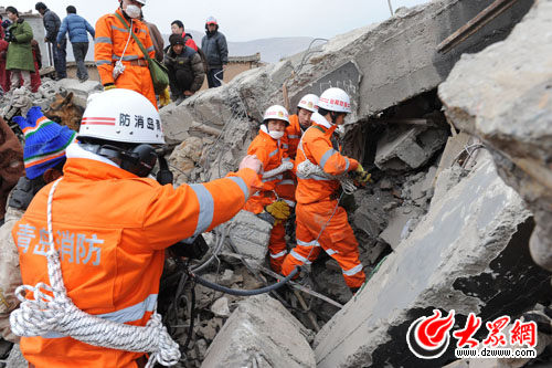 截至目前,對結古鎮,扎西科路和紅衛路這三個救援點進行搜救過程中,共挖掘出尸體4具,藏經8卷,還有大量藏族用的珍珠和藏石一宗。救援行動仍在緊張進行。本網也將繼續關注山東消防官兵在災區的救援工作。(記者 吳哲 通訊員 邱會東)