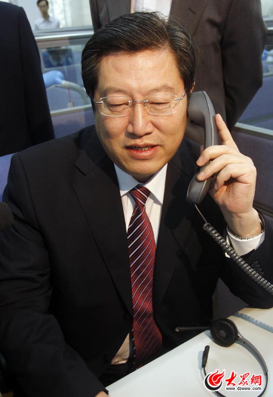 濟南市委副書記、市長張建國到“12345”熱線,接聽市民熱線電話。(資料片)