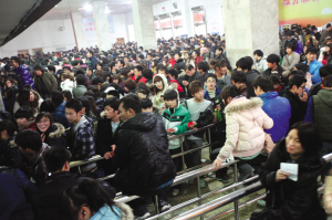 農民工朋友回家一般會帶很多行李,進站時檢票會不會很麻煩?昨日,濟南站的工作人員告訴記者,春運期間檢票時會選擇在候車室內抽查,不光是對農民工,所有的旅客都這樣,以減少旅客的上車時間。
