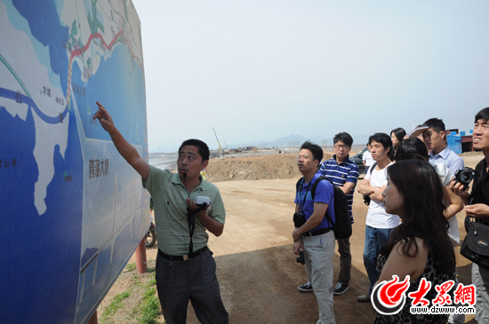 采訪團(tuán)在跨海大橋現(xiàn)場(chǎng)采訪