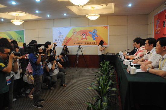 大眾網(wǎng)海陽6月15日訊(記者 馮煒程)6月15日下午,第三屆亞洲沙灘運(yùn)動會邀請函發(fā)送暨倒計(jì)時(shí)一周年啟動儀式新聞發(fā)布會在海陽舉行,包括“走近亞沙盛會”全國重點(diǎn)網(wǎng)絡(luò)媒體煙臺·海陽行采訪團(tuán)在內(nèi)的100多名記者參加了發(fā)布會,記者了解到,國家體育總局局長劉鵬,山東省省長姜大明,亞奧理事會副主席霍震霆等領(lǐng)導(dǎo)和嘉賓將出席16日舉行的倒計(jì)時(shí)一周年活動。