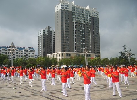[提要] 8月9日是全國第二個“全民健身日”,為傳承奧運精神,普及全民健身,營造濃厚的迎亞沙氛圍,海陽市在新元廣場舉行第二個“全民健身日”暨螳螂拳活動周表演活動,海陽市副市長高京濤觀看健身表演。