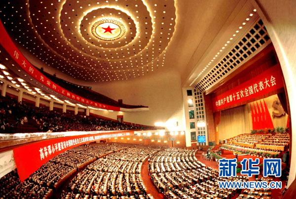 1997年9月12日至18日,中國共產(chǎn)黨第十五次全國代表大會在北京召開。圖為開幕式會場。
