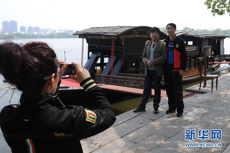 4月19日,人們在嘉興南湖湖心島煙雨樓前的紅船邊拍照。作為中國共產(chǎn)黨的誕生地,浙江嘉興南湖的紅船對國內(nèi)外游客有著特殊的吸引力。每天,大批各地游客前來瞻仰紅船,接受“紅船精神”的熏陶。 1921年7月23日,中國共產(chǎn)黨第一次全國代表大會在上海召開。由于租界巡捕襲擾,“一大”代表又移師浙江嘉興南湖的畫舫,在這里通過了黨的第一個黨綱和決議。“一大”的召開標(biāo)志著中國共產(chǎn)黨的正式成立,黨從南湖的紅船起航,開始了漫漫征程。新華社記者 韓傳號 攝