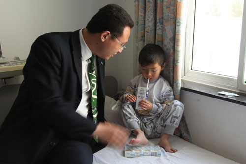 參加活動的蒙牛(濟南)市場部部長李國平表示,公司前幾天得知小永康的事情后,公司上下都非常重視。“作為蒙牛人,我們有責任獻出一份愛心。考慮到孩子的營養需求,公司特別精選了蒙牛特侖蘇和未來星兒童牛奶等高端產品,希望小永康手術成功,早日康復。”