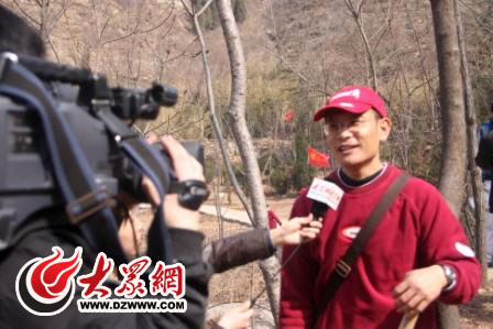 植樹節活動中優秀志愿者石廣巖接受記者采訪