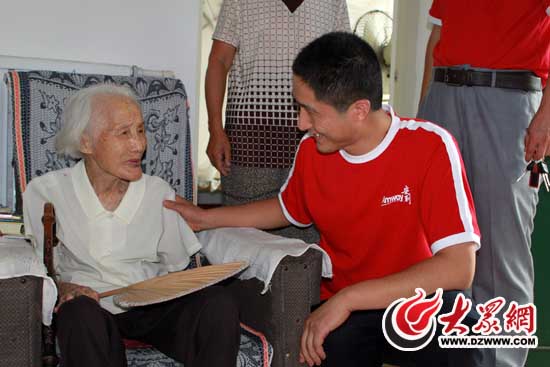 “用愛擁抱夢想”暨安利泰安分公司義捐義拍幫扶貧困高考生活動安利志愿者王兆來詢問貧困高考生家長的身體狀況