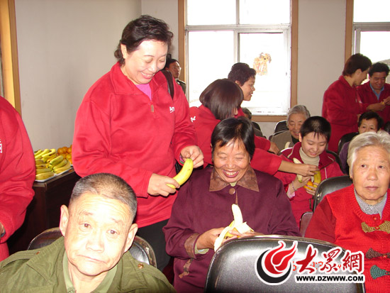 濟(jì)寧福利院情暖夕陽安利志愿者霍忠景為老人剝香蕉