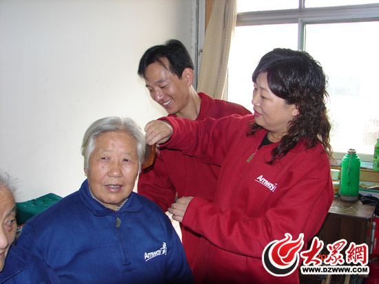 濟(jì)寧福利院情暖夕陽(yáng)安利志愿者周艷為來(lái)人梳頭