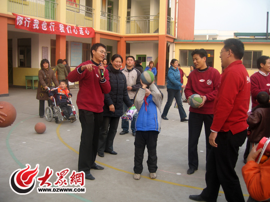 濟(jì)寧安利志愿者孔雷教特教學(xué)生投籃
