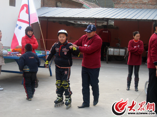 濟寧安利志愿者張磊教幫教學生學習輪滑