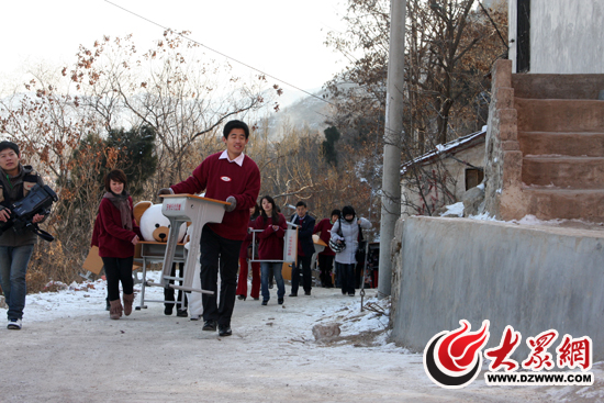 “冬日暖陽”活動中走進濟南劉家慈安小學的志愿者隊伍浩浩蕩蕩