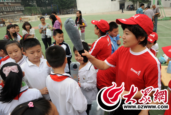 - 教師節活動里,志愿者董紅給濟南歷下實驗小學的小朋友們發獎品