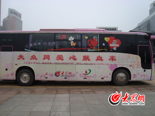 大眾網(wǎng)愛心獻血車。