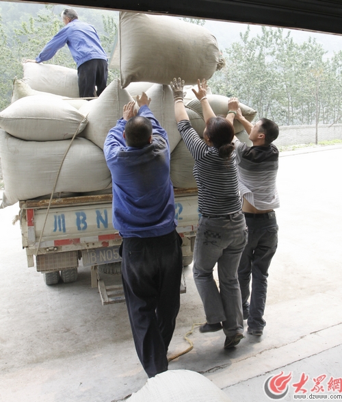 俏泉茶業在茶園基地將成品茶葉運往擂鼓鎮包裝上市